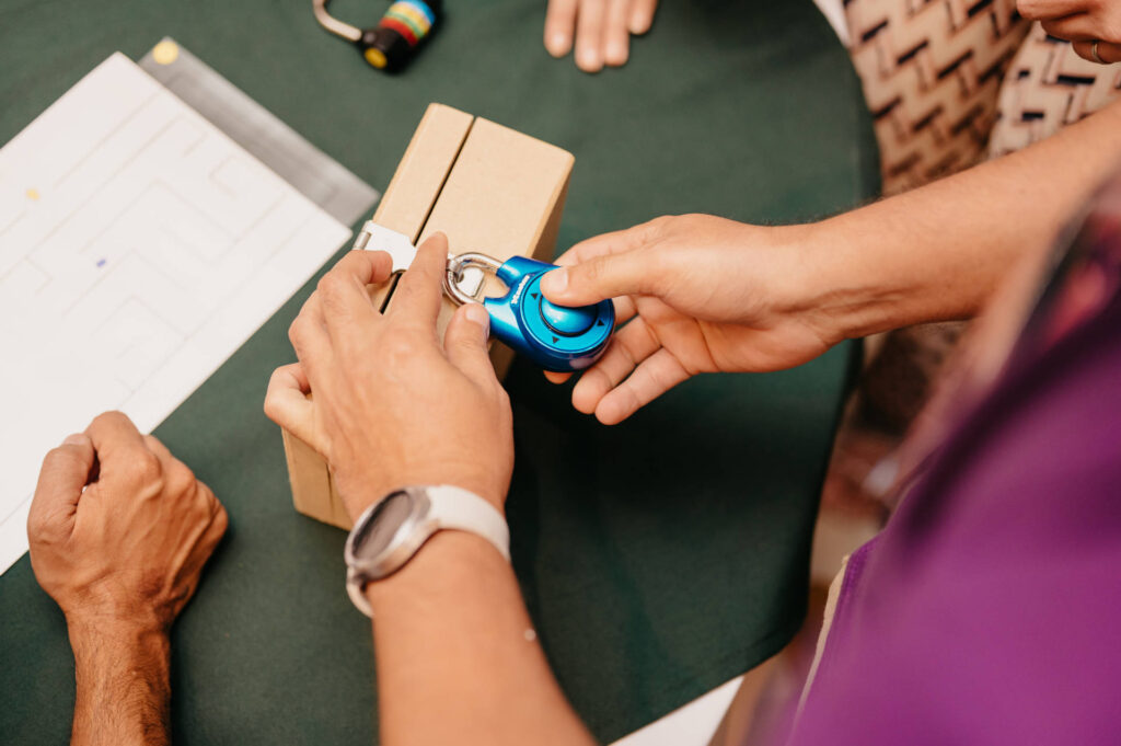 Essa experiência presencial desafia grupos a resolver enigmas interdependentes e lidar com tarefas lógicas e intuitivas sob limite de tempo, promovendo alinhamento, confiança e solução criativa de problemas.