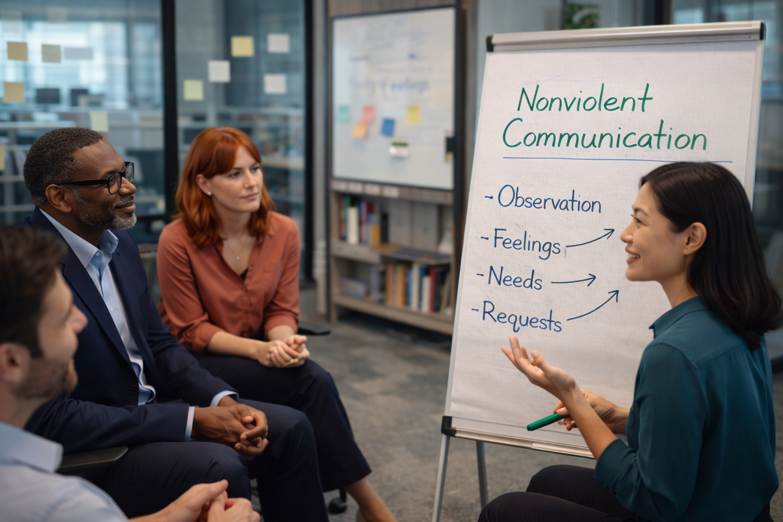 Desenvolve escuta ativa, empatia e comunicação assertiva em situações desafiadoras.
